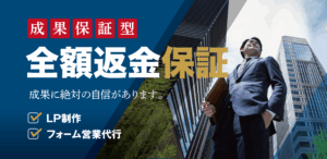 本サービスは、成果の出るランディングページ(LP)の制作から、質の高い見込み顧客へのアプローチ(フォーム営業)までを一気通貫で提供するものです。最大の特徴として、プレミアムプランでは「取引成約」を保証し、万が一成果が出ない場合には費用を全額返金する「全額返金保証制度」を導入しております。